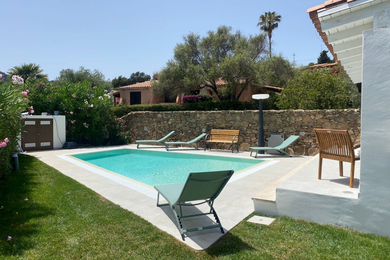 La villa dispone di parcheggio privato interno, garantendo comodità e sicurezza per gli ospiti che viaggiano in auto. All’esterno si trovano diversi spazi pensati per vivere al meglio le giornate all’aria aperta: una piscina privata ad uso esclusivo, circondata da lettini prendisole, un piccolo cortile e un ampio patio coperto attrezzato con arredi da esterno e tavolo da pranzo, perfetto per pranzi e cene all’aperto o per momenti di relax durante le serate estive.