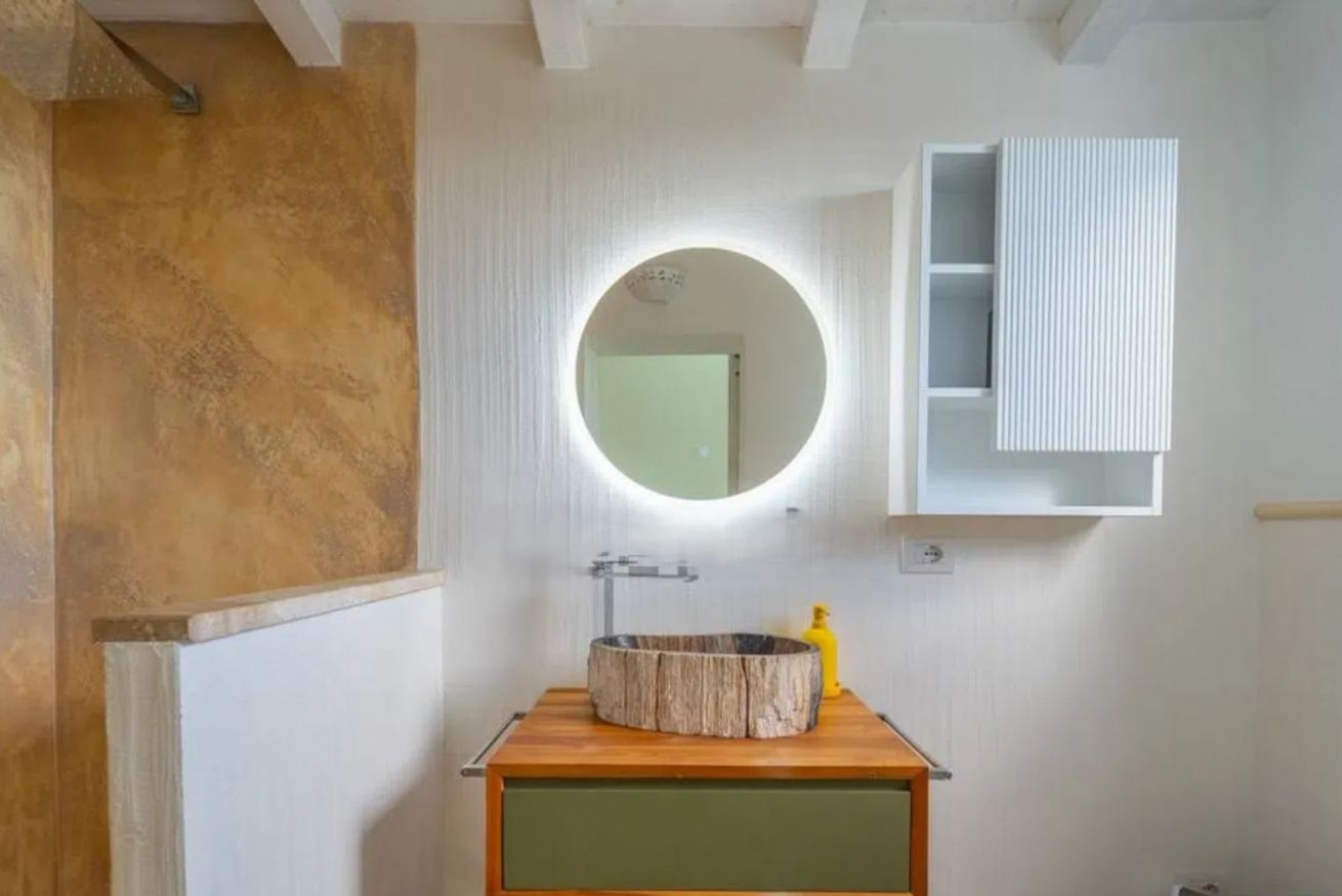 La zona notte comprende due camere matrimoniali, di cui una con bagno privato, oltre a un secondo bagno completo a disposizione degli ospiti. Nella zona soppalcata sono presenti due letti singoli, offrendo ulteriore spazio per ospitare più famiglie .